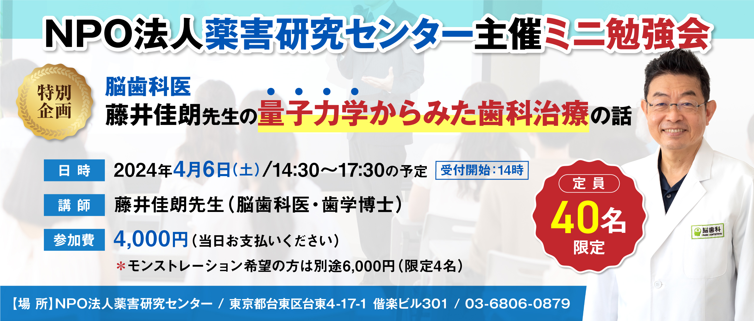 2024年4月6日(土) / 満員御礼!4月6日特別企画!脳歯科医、藤井佳朗先生の量子学からみた歯科治療の話